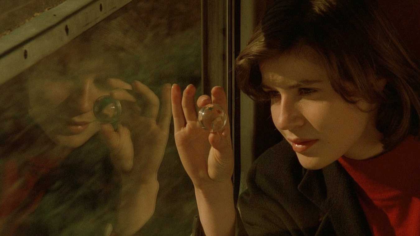 در فیلم قرمز شخصیت اصلی یک دختر جوان دانشجو‌- مدل به‌نام والنتین است که تنها و دور از خانواده در شهر پاریس زندگی می‌کند. یک‌شب او با سگ حامله‌ای تصادف می‌کند و این موضوع زمینه‌ساز آشنایی او با قاضی بازنشسته و رشته دیدارهایی با او می‌شود. قاضی بازنشسته که در جوانی از سوی نامزدش مورد خیانت قرارگرفته از احساسات و عواطف انسانی تهی شده و نسبت به امور پیرامون و اوضاع جهانی بی‌تفاوت است. زمانی که والنتین خبر تصادف با سگ قاضی بازنشسته را می‌دهد قاضی بدون ابراز هیچ واکنش عاطفی می‌گوید: "... آه، از دیروز گم‌شده بود..." موضوعی که باعث خشم والنتین می‌شود. قاضی با همان بی‌تفاوتی عصبی‌کننده در ادامه به والنتین می‌گوید: "اگه می‌خوای می‌تونی تینا رو ببری برای خودت..."