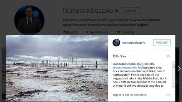 ابراز نگرانی از وضعیت دریاچه ارومیه در اینستاگرام دیکاپریو