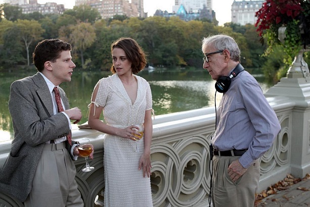 «کافه سوسایتی» وودی آلن فیلمی دلفریب، شیرین و به همان اندازه تلخ است. فیلمی که توسط ویتوریو استورارو فیلمبرداری شده است و به گونهای بازگشت وودی آلن به دوران نوستالژی دههی 1930 در نیویورک است. فیلم مشخصاً از بازی دو هنرپیشهی اصلیاش-جسی آیزنبرگ و کریستین استوارت-به شدت بهره برده است. آیزنبرگ که به قولی یکی از بهترین بازیهای عمر سینماییاش را در فیلم آلن تجربه کرده است. او در این فیلم نقش بابی را بازی میکند. پسری از برانکس که از کار کردن برای پدر سختگیر و فرصتطلبش که در فیلم توسط کن استات بازی میشود، خسته شده است. بابی پسرکی پررو، رمانتیک و بی غل و غش است. چیزی شبیه به جوانیهای وودی آلن. و باید اذعان کنیم آیزنبرگ به خوبی توانسته تصویری از خودِ وودی آلن را در ذهن مخاطبان بازسازی کند.