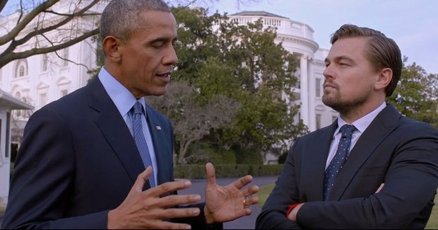 در مستند «قبل از سیلاب» دی کاپریو همچنین گفتگویی کوتاه با باراک اوباما رییس جمهور آمریکا دارد. اوباما نیز همچون دی کاپریو از پیگیران جدی مسئلهی خطر گرمایش زمین است. او مشخصا در طول دورهی دوم ریاست جمهوری خود بودجهای را برای مقابله با این خطر در اختیار وزارت محیط زیست دولت متبوع خود قرار داد. مستند «قبل از سیلاب» به زودی اکران جهانی خواهد شد.